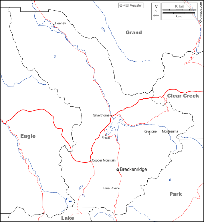 d-maps > संयुक्त राज्य > कोलोराडो > शिखर सम्मेलन काउंटी > सीमाओं, जल-सर्वेक्षण, मुख्य शहरों, सड़कों, नाम, सफेद