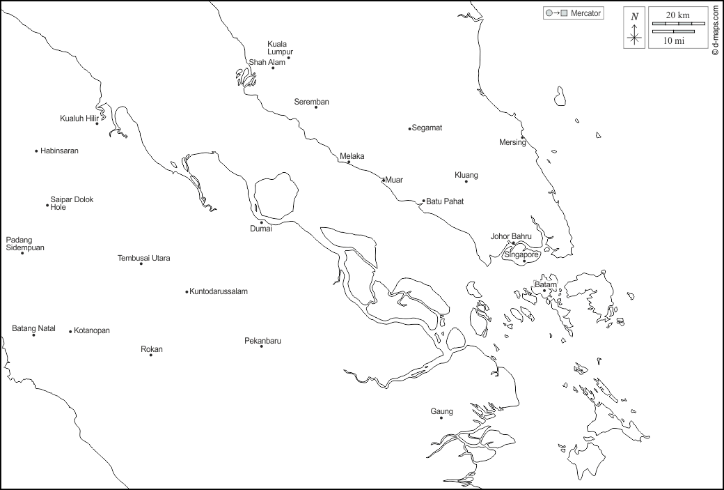 d-maps > एशिया > मलक्का जलडमरूमध्य > तटों, मुख्य शहरों, नाम, सफेद