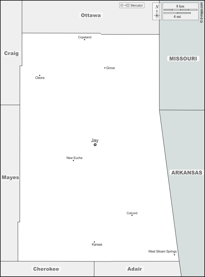 d-maps > संयुक्त राज्य > ओकलाहोमा > डेलावेर काउंटी > सीमाओं, मुख्य शहरों, नाम