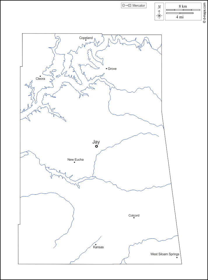 d-maps > संयुक्त राज्य > ओकलाहोमा > डेलावेर काउंटी > बाह्यरेखा, जल-सर्वेक्षण, मुख्य शहरों, नाम, सफेद