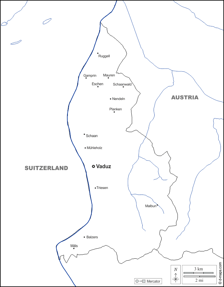 d-maps > यूरोप > लिख्टेंश्टाइन > सीमाओं, जल-सर्वेक्षण, मुख्य शहरों, नाम, सफेद