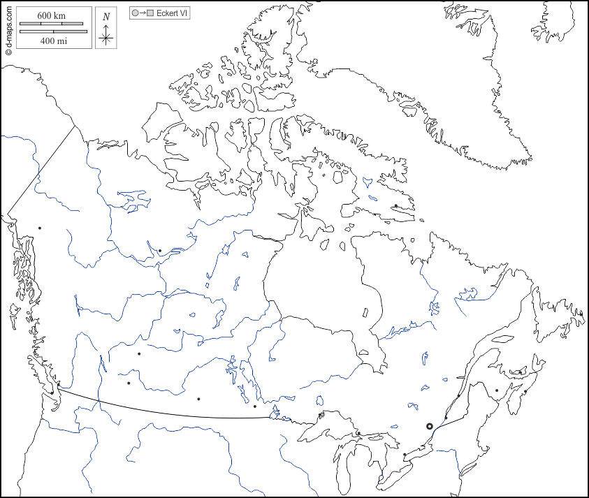 d-maps > महाअमेरिका > कनाडा > कनाडा > सीमाओं, जल-सर्वेक्षण, मुख्य शहरों, सफेद