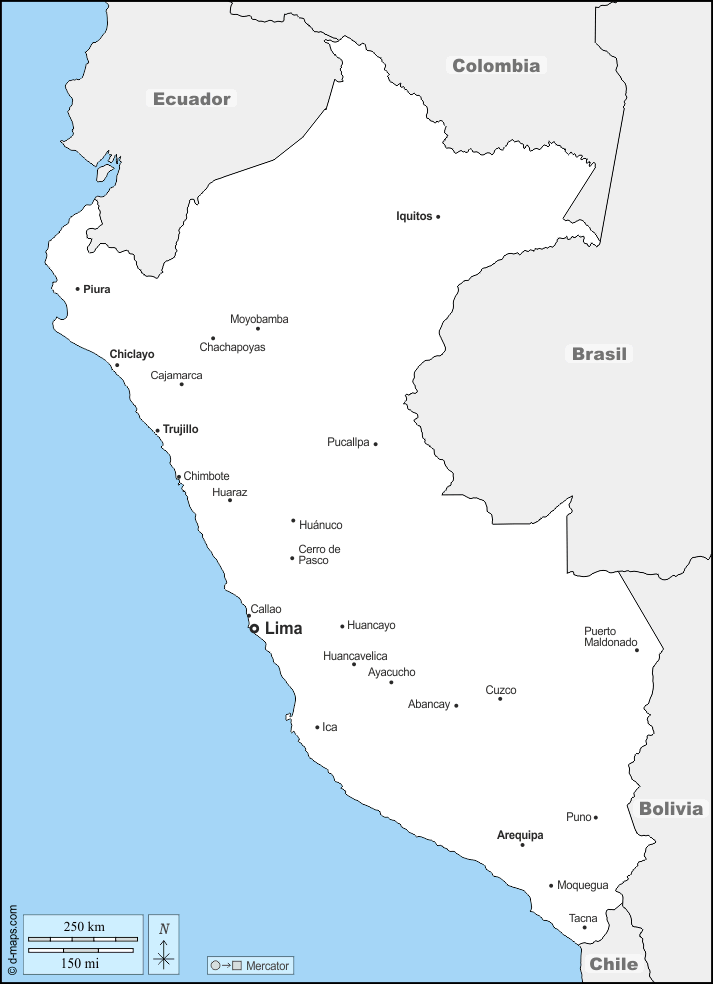 d-maps > महाअमेरिका > पेरू > पेरू > सीमाओं, मुख्य शहरों, नाम