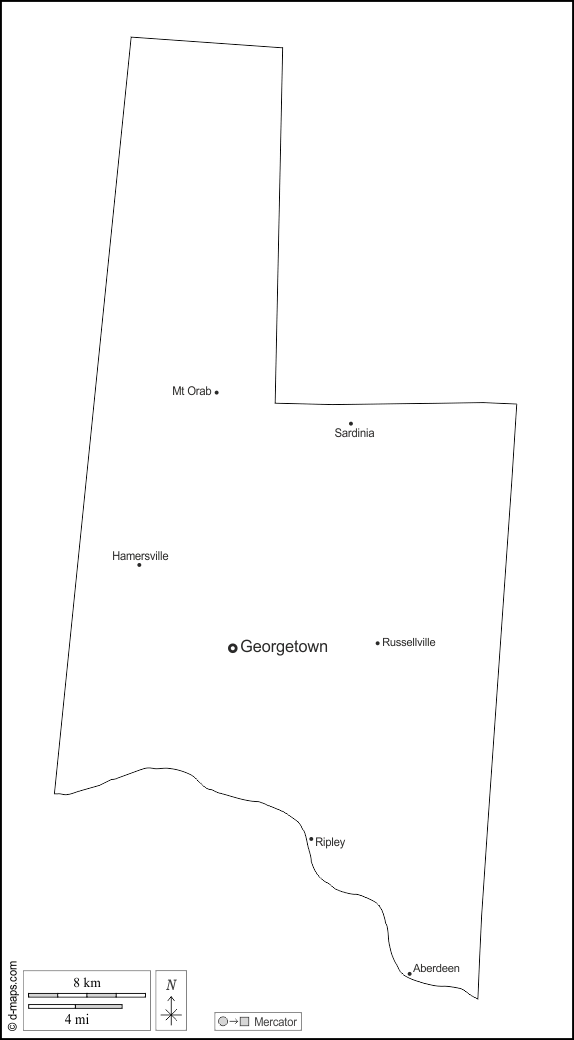 d-maps > संयुक्त राज्य > ओहायो > ब्राउन काउंटी > बाह्यरेखा, मुख्य शहरों, नाम, सफेद