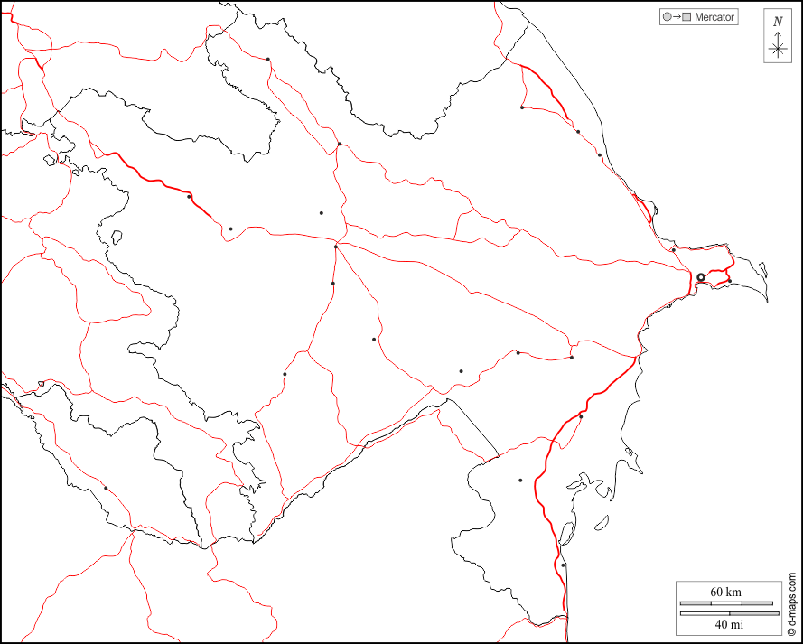 d-maps > एशिया > अज़रबैजान > सीमाओं, मुख्य शहरों, सड़कों, सफेद