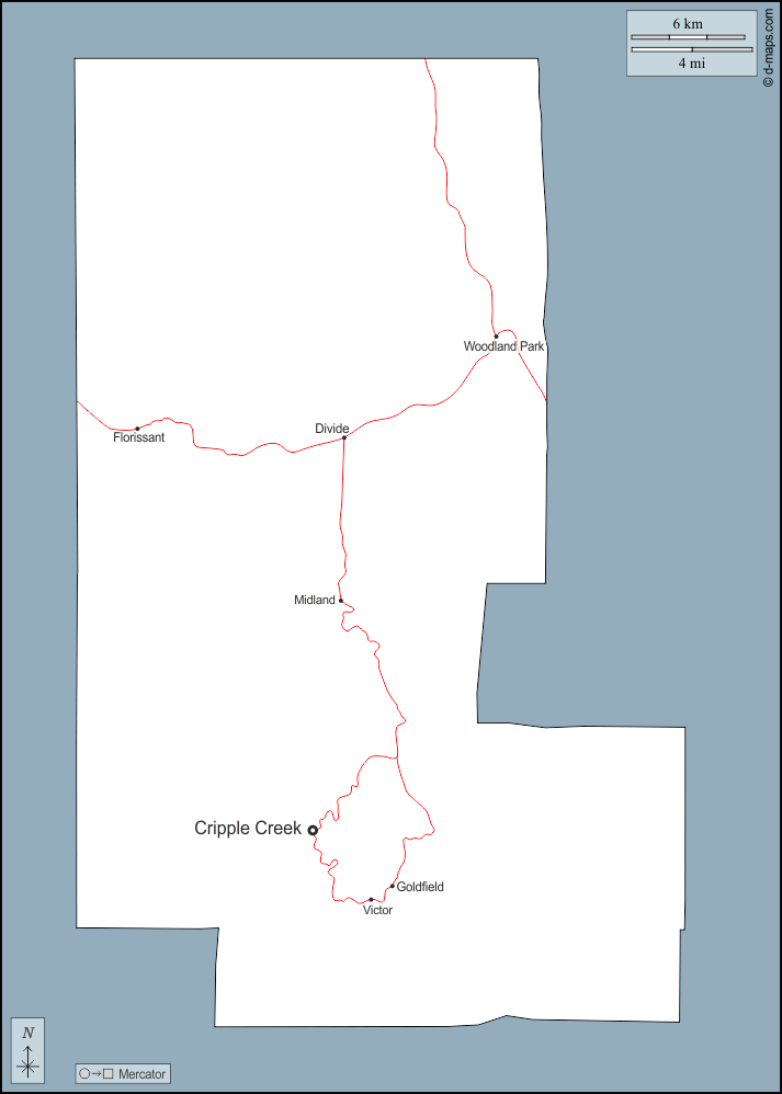 d-maps > संयुक्त राज्य > कोलोराडो > टेलर काउंटी > बाह्यरेखा, मुख्य शहरों, सड़कों, नाम