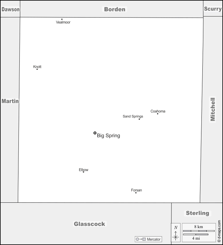 d-maps > संयुक्त राज्य > टेक्सास > हॉवर्ड काउंटी > सीमाओं, मुख्य शहरों, नाम