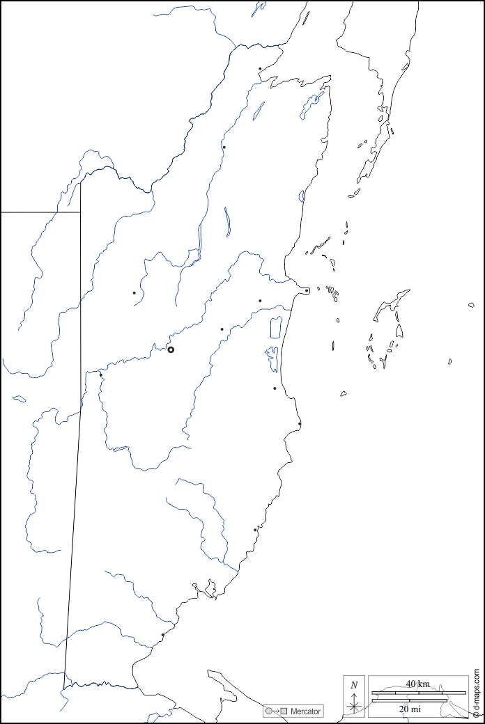 d-maps > महाअमेरिका > बेलीज़ > सीमाओं, जल-सर्वेक्षण, मुख्य शहरों, सफेद