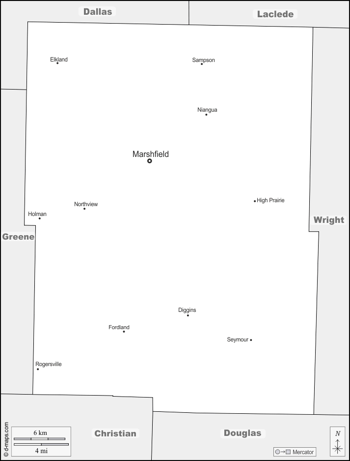 d-maps > संयुक्त राज्य > मिज़ूरी > वेबस्टर काउंटी > सीमाओं, मुख्य शहरों, नाम