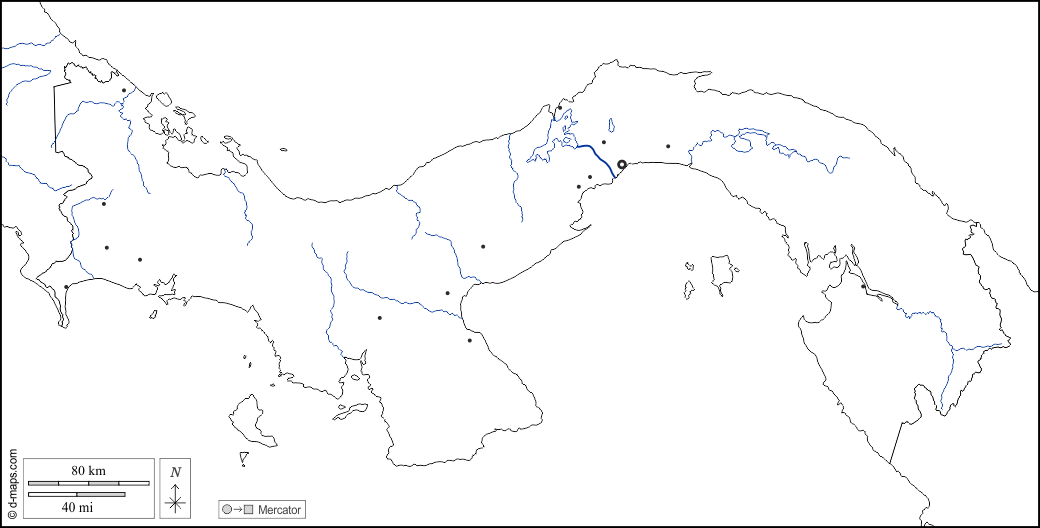 d-maps > महाअमेरिका > पनामा > सीमाओं, जल-सर्वेक्षण, मुख्य शहरों, सफेद