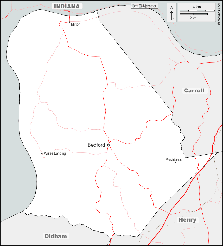 d-maps > संयुक्त राज्य > केंटुकी > ट्रिम्बल काउंटी > सीमाओं, मुख्य शहरों, सड़कों, नाम