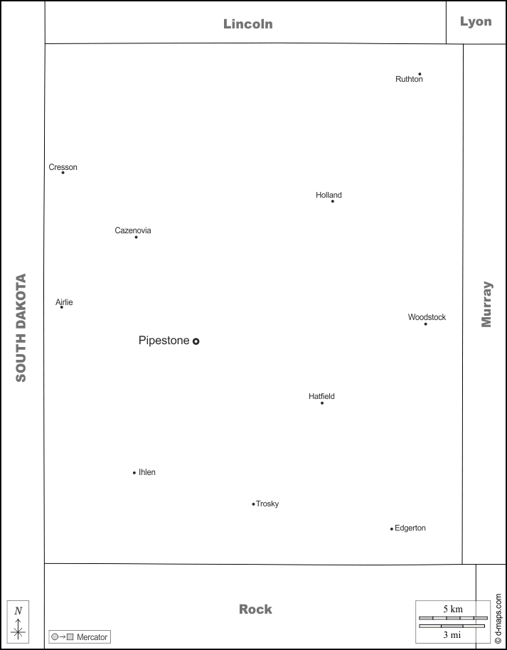 d-maps > संयुक्त राज्य > मिनेसोटा > पाइपस्टोन काउंटी > सीमाओं, मुख्य शहरों, नाम, सफेद