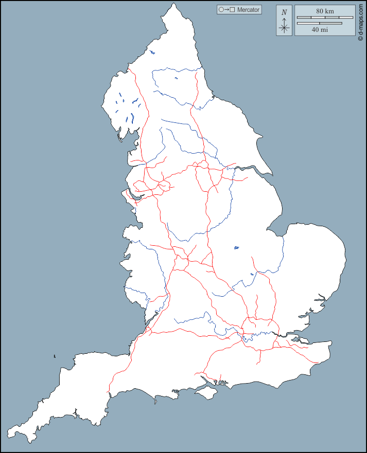 d-maps > यूरोप > युनाइटेड किंगडम > इंग्लैंड > बाह्यरेखा, जल-सर्वेक्षण, सड़कों
