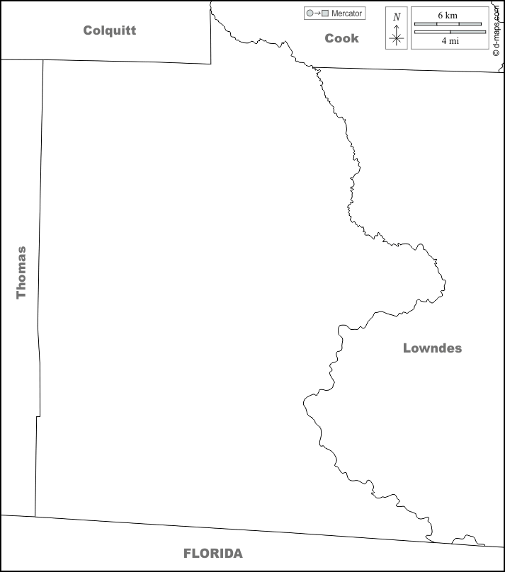 d-maps > संयुक्त राज्य > जॉर्जिया > ब्रूक्स काउंटी > सीमाओं, नाम, सफेद