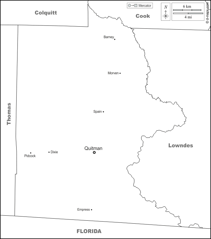 d-maps > संयुक्त राज्य > जॉर्जिया > ब्रूक्स काउंटी > सीमाओं, मुख्य शहरों, नाम, सफेद