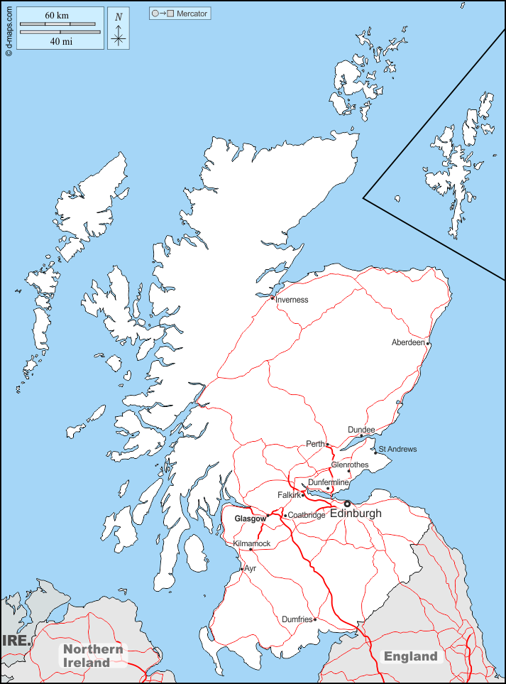 d-maps > यूरोप > युनाइटेड किंगडम > स्कॉट्लैण्ड > सीमाओं, मुख्य शहरों, सड़कों, नाम