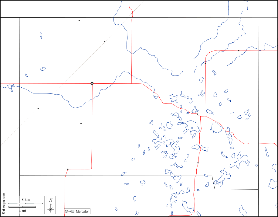 d-maps > संयुक्त राज्य > साउथ डकोटा > मार्शल काउंटी > सीमाओं, जल-सर्वेक्षण, मुख्य शहरों, सड़कों, सफेद