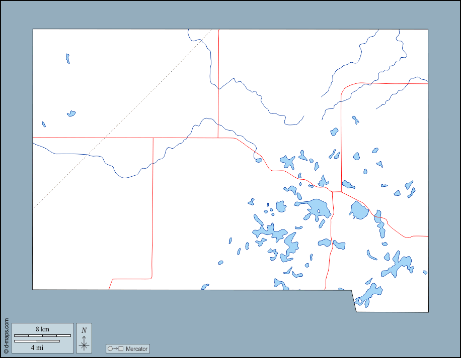 d-maps > संयुक्त राज्य > साउथ डकोटा > मार्शल काउंटी > बाह्यरेखा, जल-सर्वेक्षण, सड़कों
