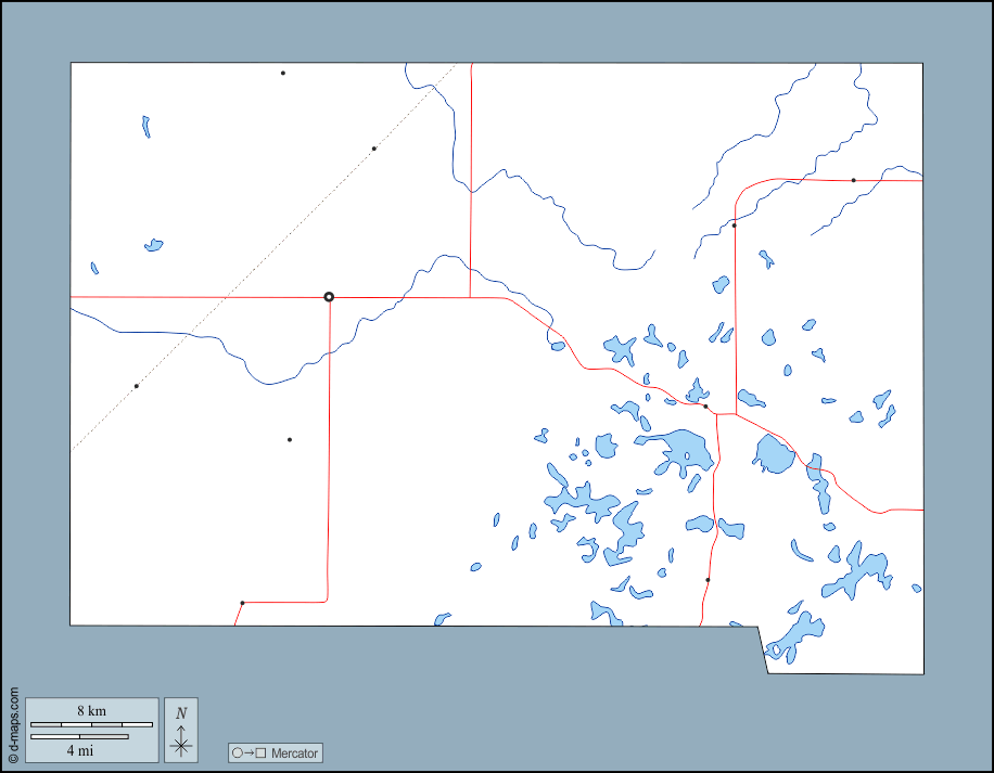 d-maps > संयुक्त राज्य > साउथ डकोटा > मार्शल काउंटी > बाह्यरेखा, जल-सर्वेक्षण, मुख्य शहरों, सड़कों