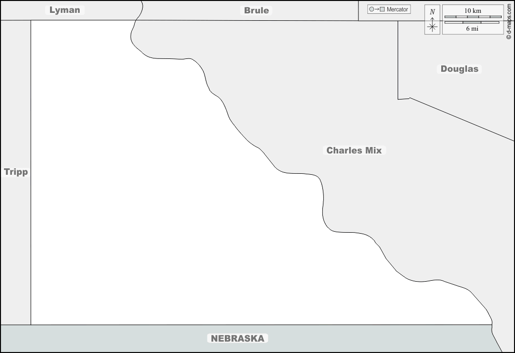 d-maps > संयुक्त राज्य > साउथ डकोटा > ग्रेगरी काउंटी > सीमाओं, नाम