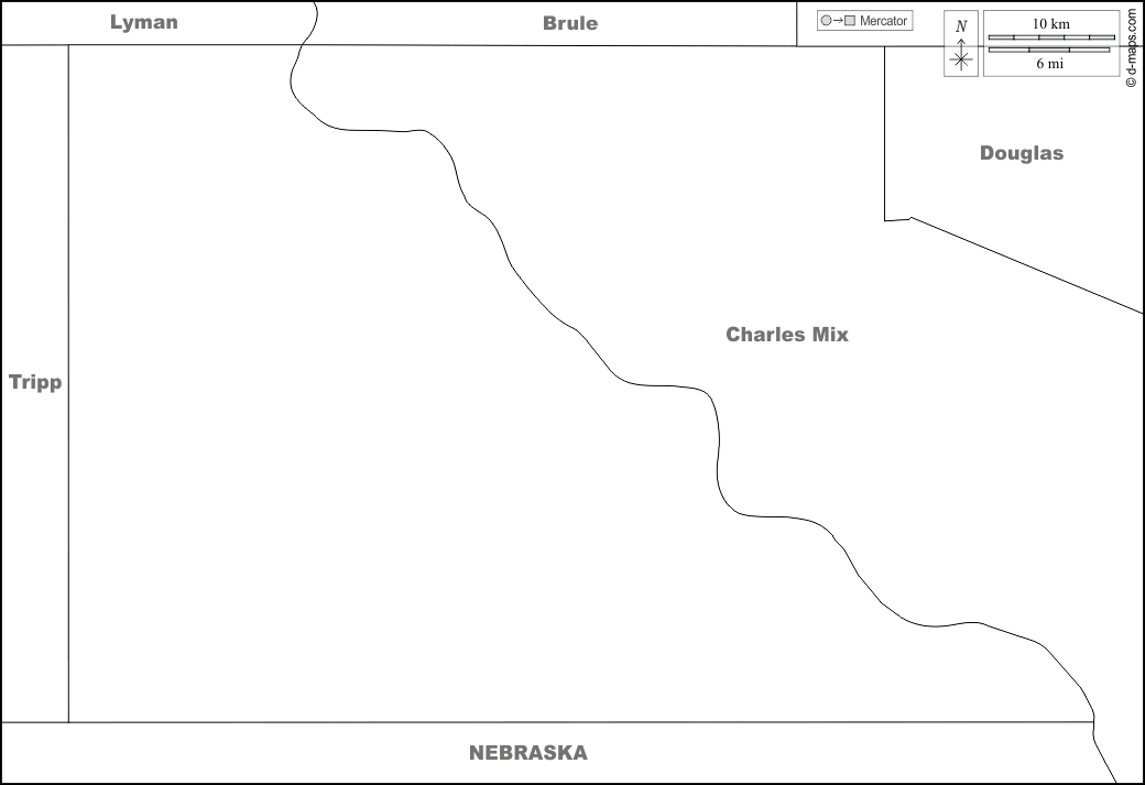 d-maps > संयुक्त राज्य > साउथ डकोटा > ग्रेगरी काउंटी > सीमाओं, नाम, सफेद