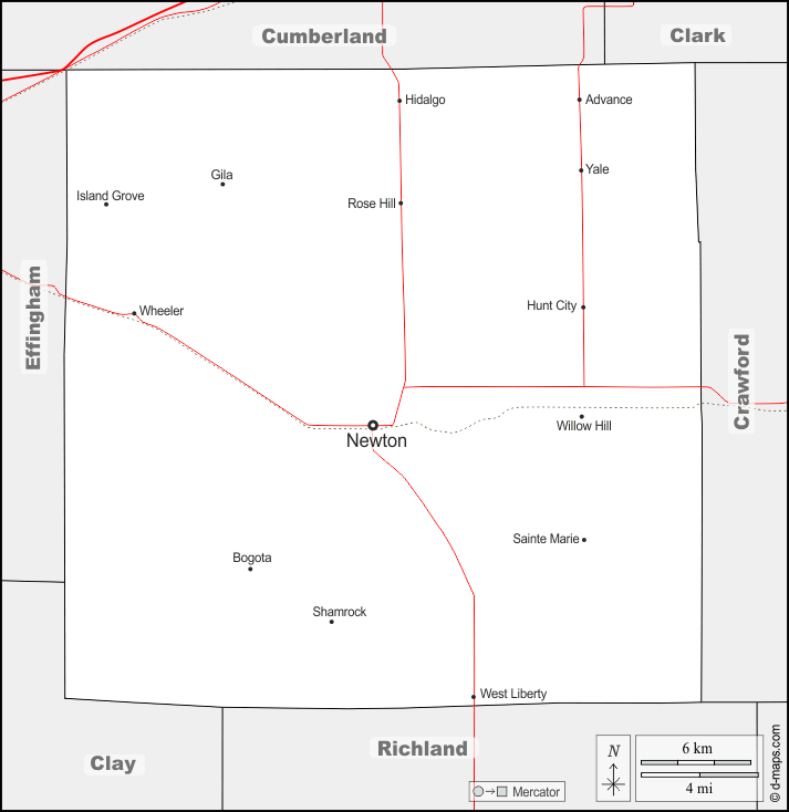 d-maps > संयुक्त राज्य > इलिनॉय > जैस्पर काउंटी > सीमाओं, मुख्य शहरों, सड़कों, नाम