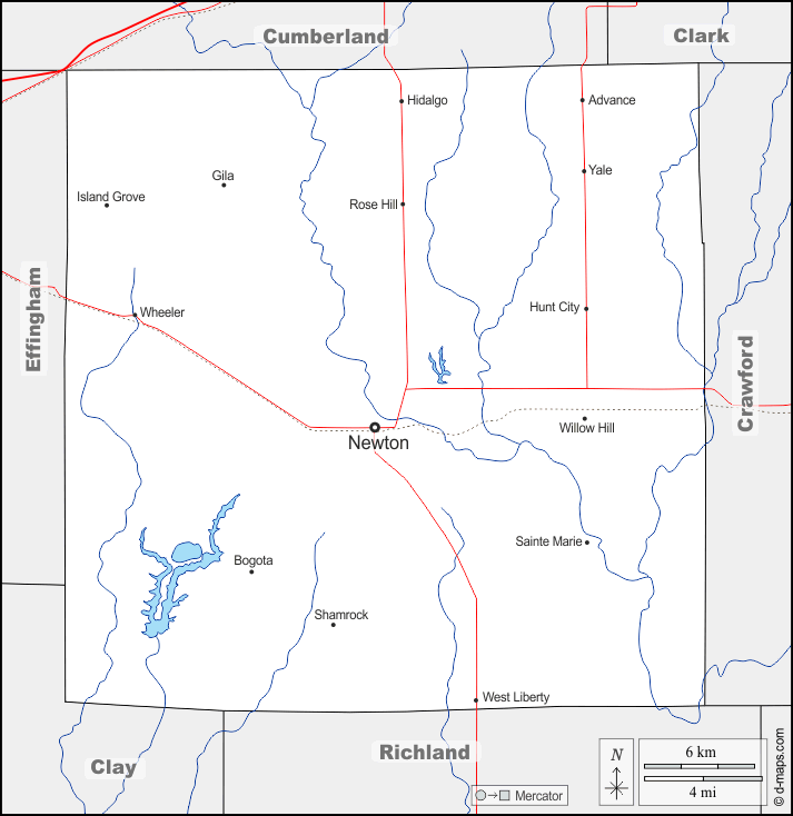 d-maps > संयुक्त राज्य > इलिनॉय > जैस्पर काउंटी > सीमाओं, जल-सर्वेक्षण, मुख्य शहरों, सड़कों, नाम