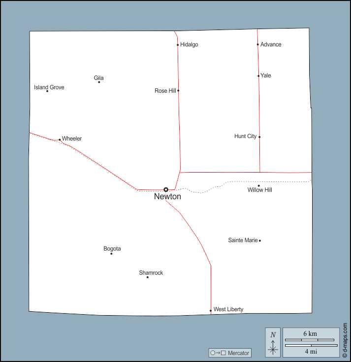 d-maps > संयुक्त राज्य > इलिनॉय > जैस्पर काउंटी > बाह्यरेखा, मुख्य शहरों, सड़कों, नाम