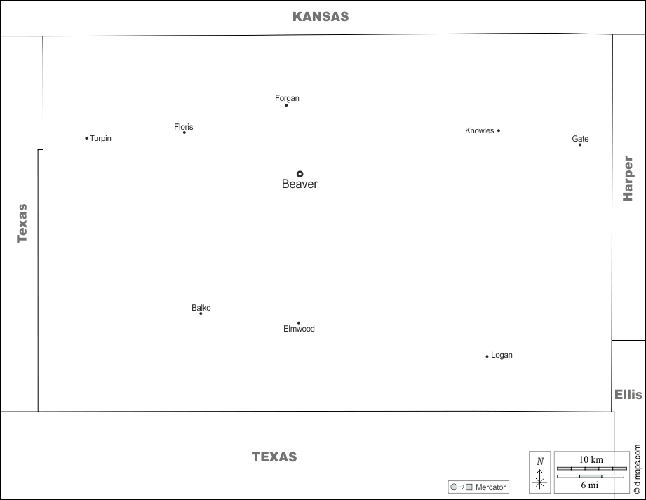 d-maps > संयुक्त राज्य > ओकलाहोमा > बेवर काउंटी > सीमाओं, मुख्य शहरों, नाम, सफेद