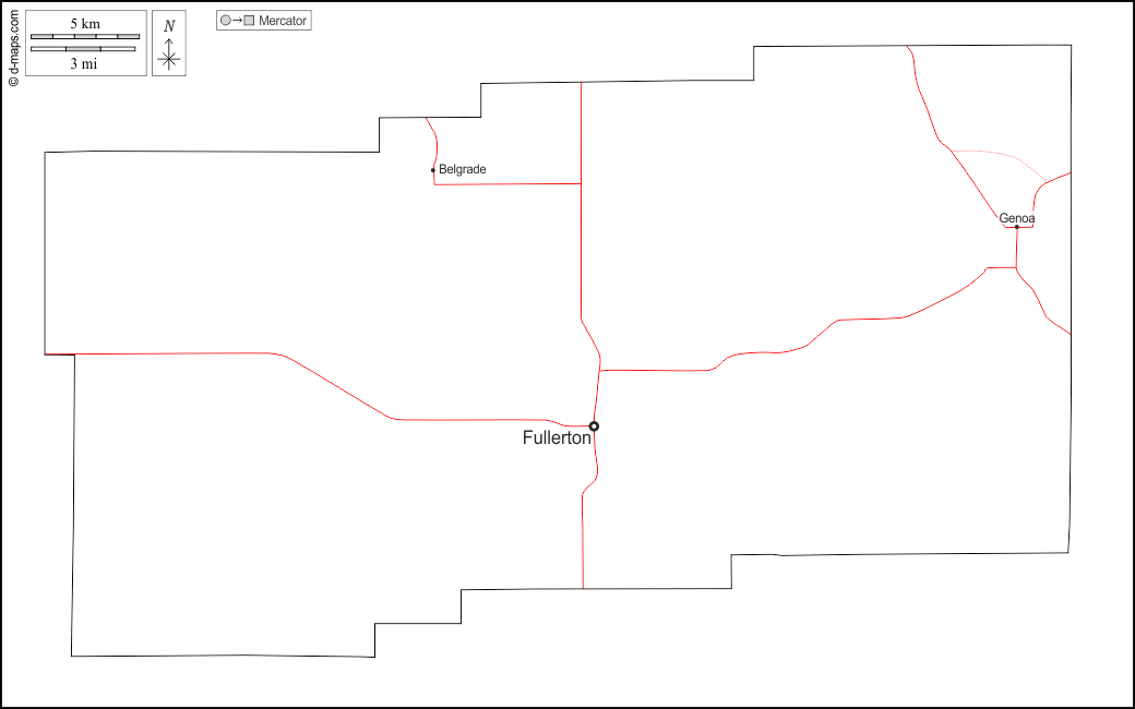 d-maps > संयुक्त राज्य > नेब्रास्का > नेंस काउंटी > बाह्यरेखा, मुख्य शहरों, सड़कों, नाम, सफेद