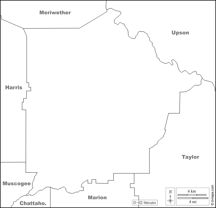 d-maps > संयुक्त राज्य > जॉर्जिया > टैलबोट काउंटी > सीमाओं, नाम, सफेद