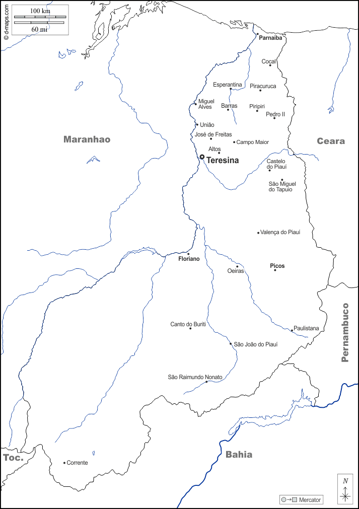 d-maps > महाअमेरिका > ब्राज़ील > पियाउई राज्य > सीमाओं, जल-सर्वेक्षण, मुख्य शहरों, नाम, सफेद