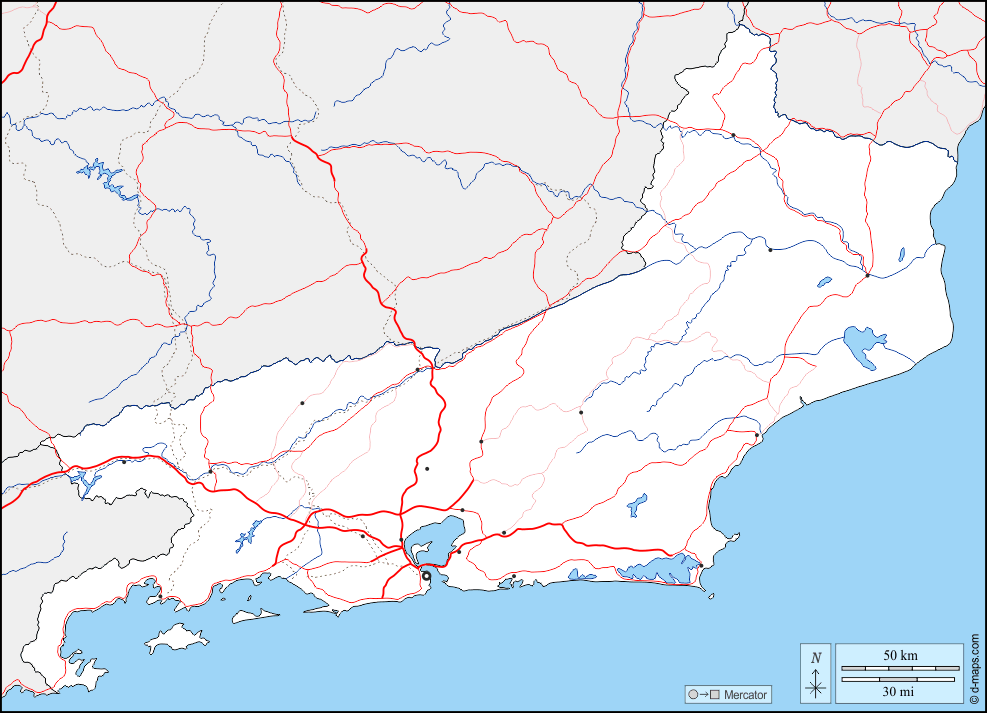 d-maps > महाअमेरिका > ब्राज़ील > रियो डी जेनेरो राज्य > सीमाओं, जल-सर्वेक्षण, मुख्य शहरों, सड़कों