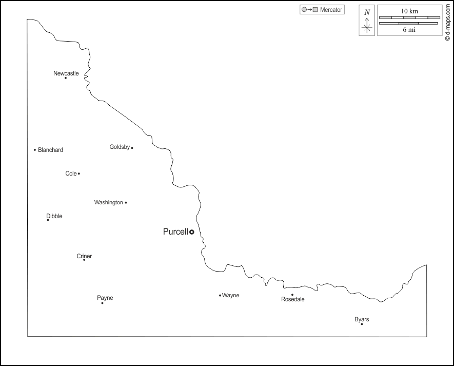 d-maps > संयुक्त राज्य > ओकलाहोमा > मैक्क्लेन काउंटी > बाह्यरेखा, मुख्य शहरों, नाम, सफेद