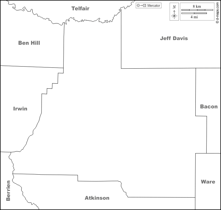 d-maps > संयुक्त राज्य > जॉर्जिया > कॉफी काउंटी > सीमाओं, नाम, सफेद