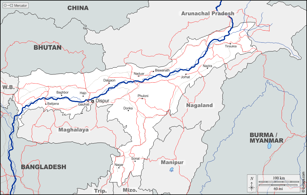 d-maps > एशिया > भारत > असम > सीमाओं, जल-सर्वेक्षण, मुख्य शहरों, सड़कों, नाम