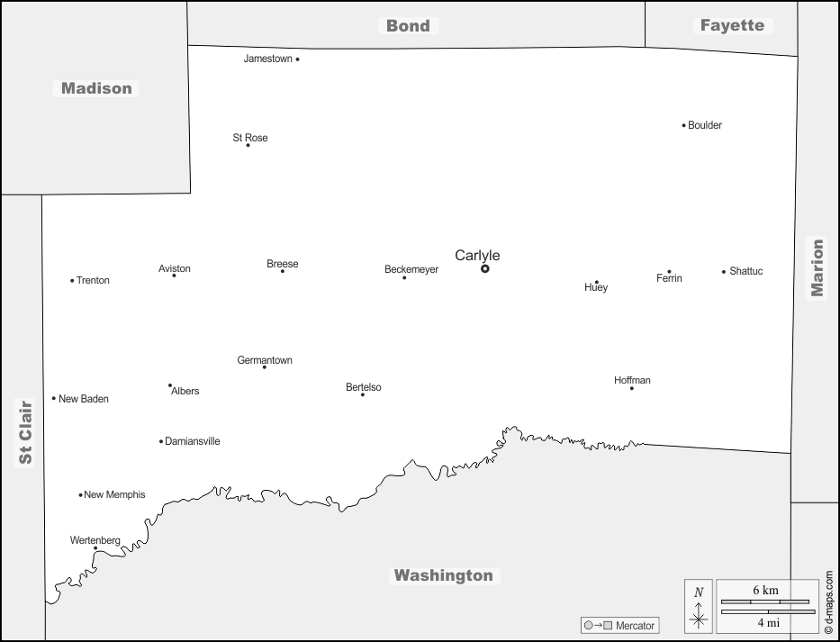 d-maps > संयुक्त राज्य > इलिनॉय > क्लिंटन काउंटी > सीमाओं, मुख्य शहरों, नाम
