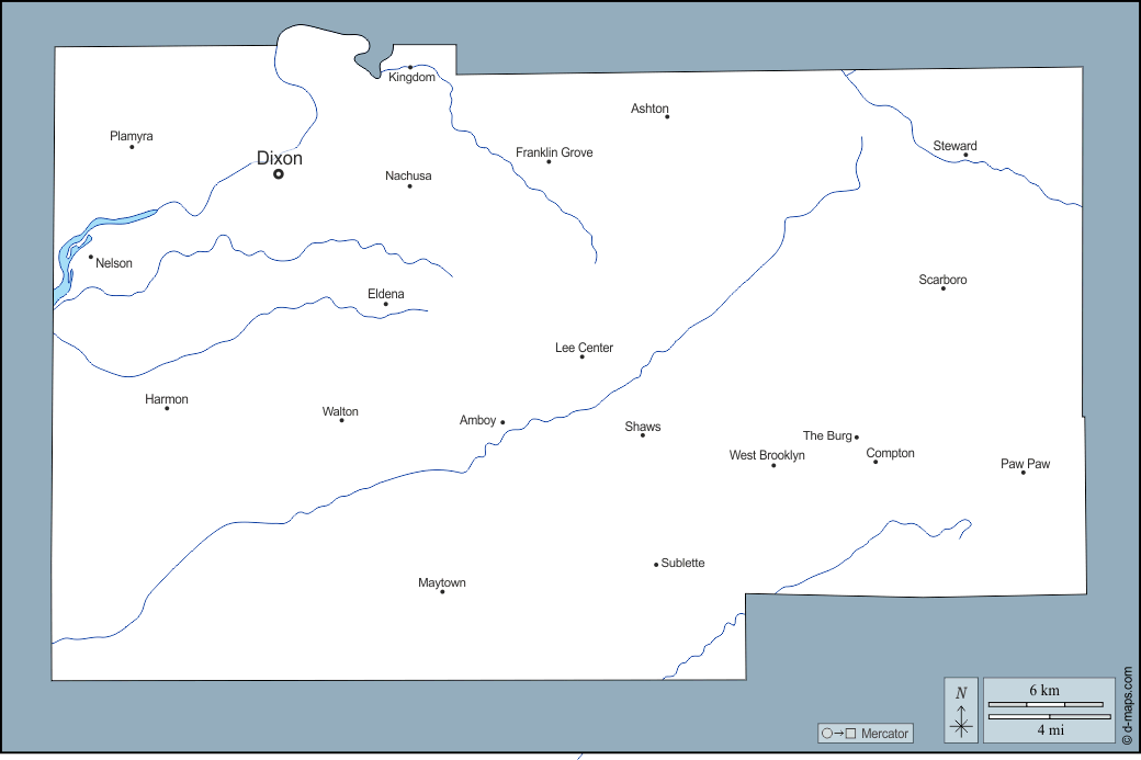 d-maps > संयुक्त राज्य > इलिनॉय > ली काउंटी > बाह्यरेखा, जल-सर्वेक्षण, मुख्य शहरों, नाम