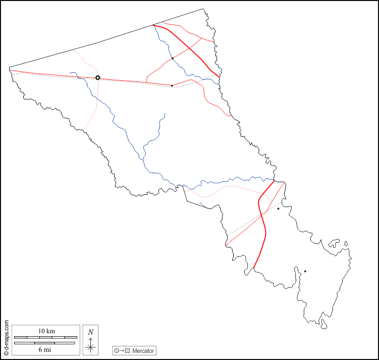 d-maps > संयुक्त राज्य > जॉर्जिया > ब्रायन काउंटी > बाह्यरेखा, जल-सर्वेक्षण, मुख्य शहरों, सड़कों, सफेद