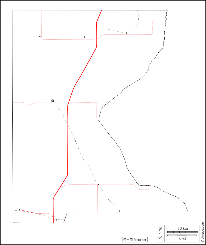 d-maps > संयुक्त राज्य > साउथ डकोटा > रॉबर्ट्स काउंटी > बाह्यरेखा, मुख्य शहरों, सड़कों, सफेद