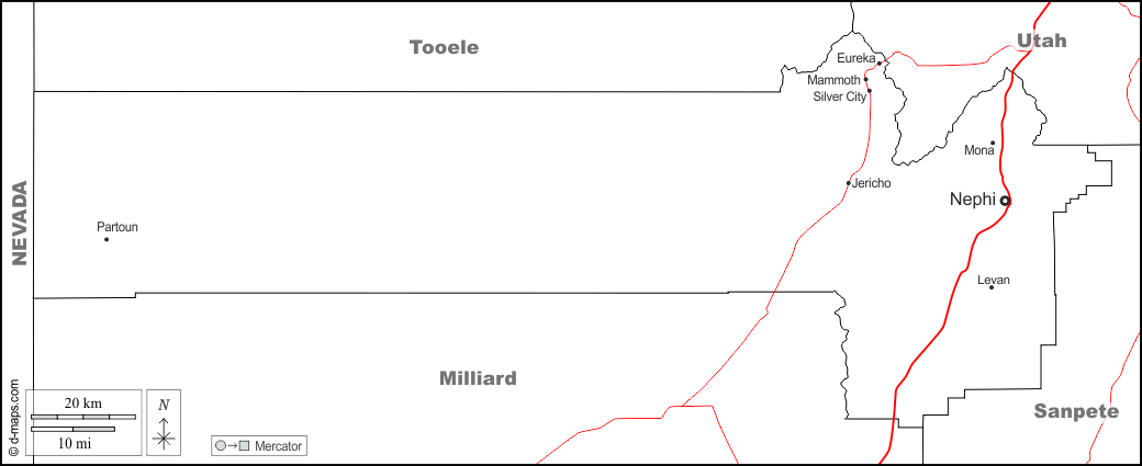 d-maps > संयुक्त राज्य > यूटा > जुआब काउंटी > सीमाओं, मुख्य शहरों, सड़कों, नाम, सफेद