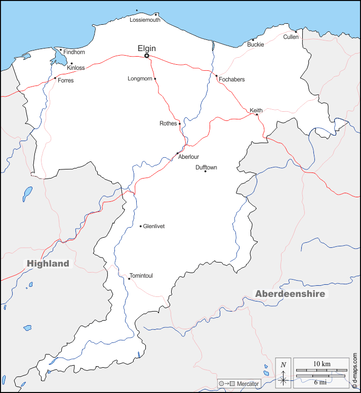d-maps > यूरोप > युनाइटेड किंगडम > मोरे > सीमाओं, जल-सर्वेक्षण, मुख्य शहरों, सड़कों, नाम