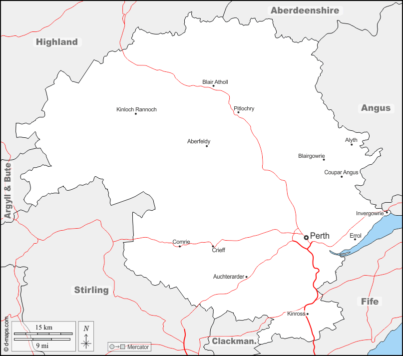 d-maps > यूरोप > युनाइटेड किंगडम > पर्थ और किन्रॉस > सीमाओं, मुख्य शहरों, सड़कों, नाम