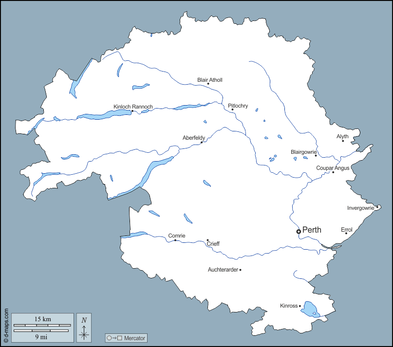 d-maps > यूरोप > युनाइटेड किंगडम > पर्थ और किन्रॉस > बाह्यरेखा, जल-सर्वेक्षण, मुख्य शहरों, नाम