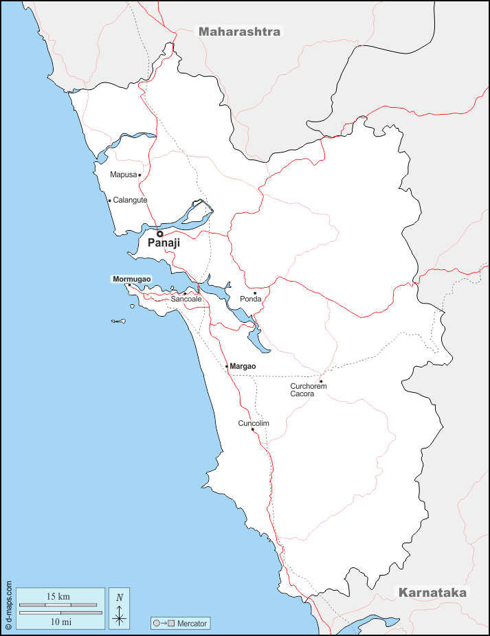 d-maps > एशिया > भारत > गोवा > सीमाओं, मुख्य शहरों, सड़कों, नाम