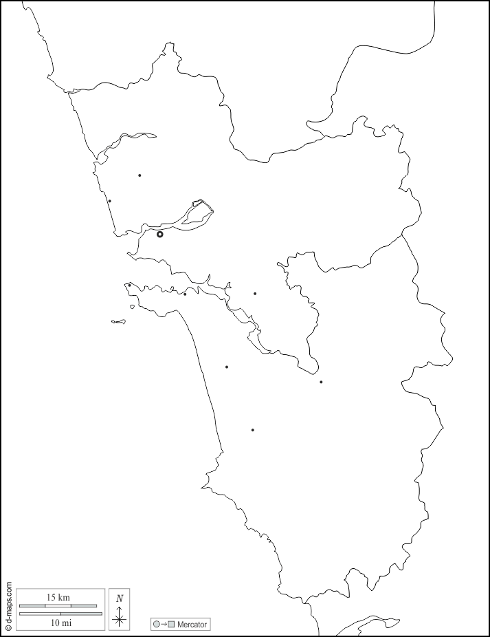 d-maps > एशिया > भारत > गोवा > सीमाओं, जिलों, मुख्य शहरों, सफेद