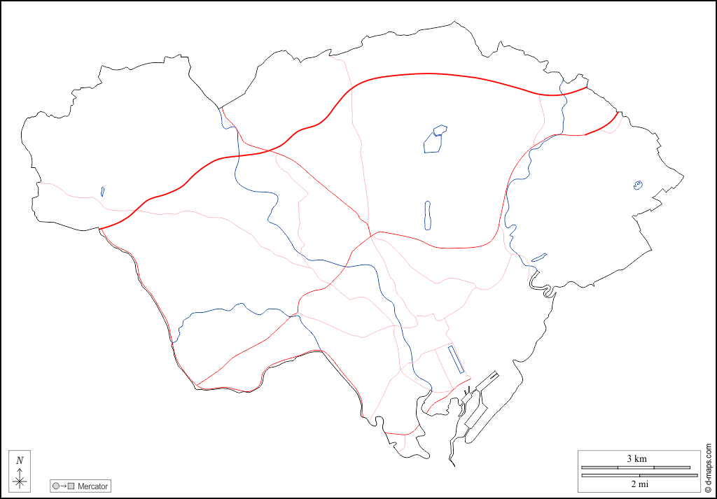 d-maps > यूरोप > युनाइटेड किंगडम > कार्डिफ > बाह्यरेखा, जल-सर्वेक्षण, सड़कों, सफेद