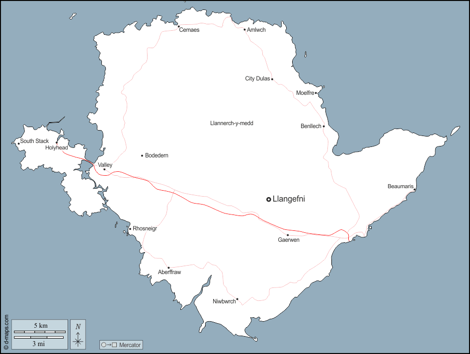 d-maps > यूरोप > युनाइटेड किंगडम > एग्लेसी > बाह्यरेखा, मुख्य शहरों, सड़कों, नाम