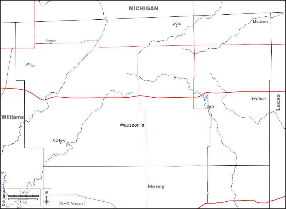 d-maps > संयुक्त राज्य > ओहायो > फुल्टन काउंटी > सीमाओं, जल-सर्वेक्षण, मुख्य शहरों, सड़कों, नाम, सफेद
