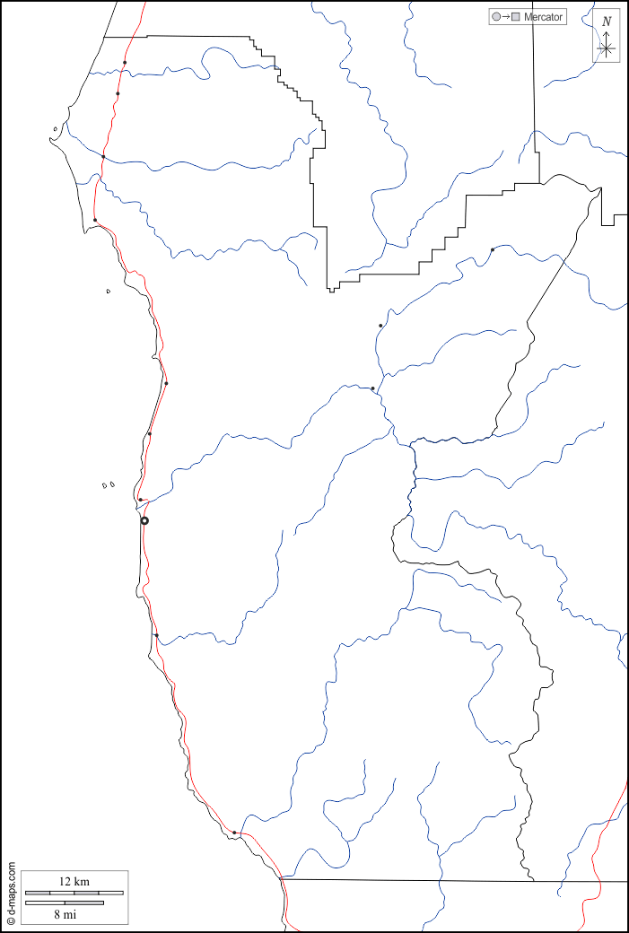 d-maps > संयुक्त राज्य > औरिगन > करी काउंटी > सीमाओं, जल-सर्वेक्षण, मुख्य शहरों, सड़कों, सफेद